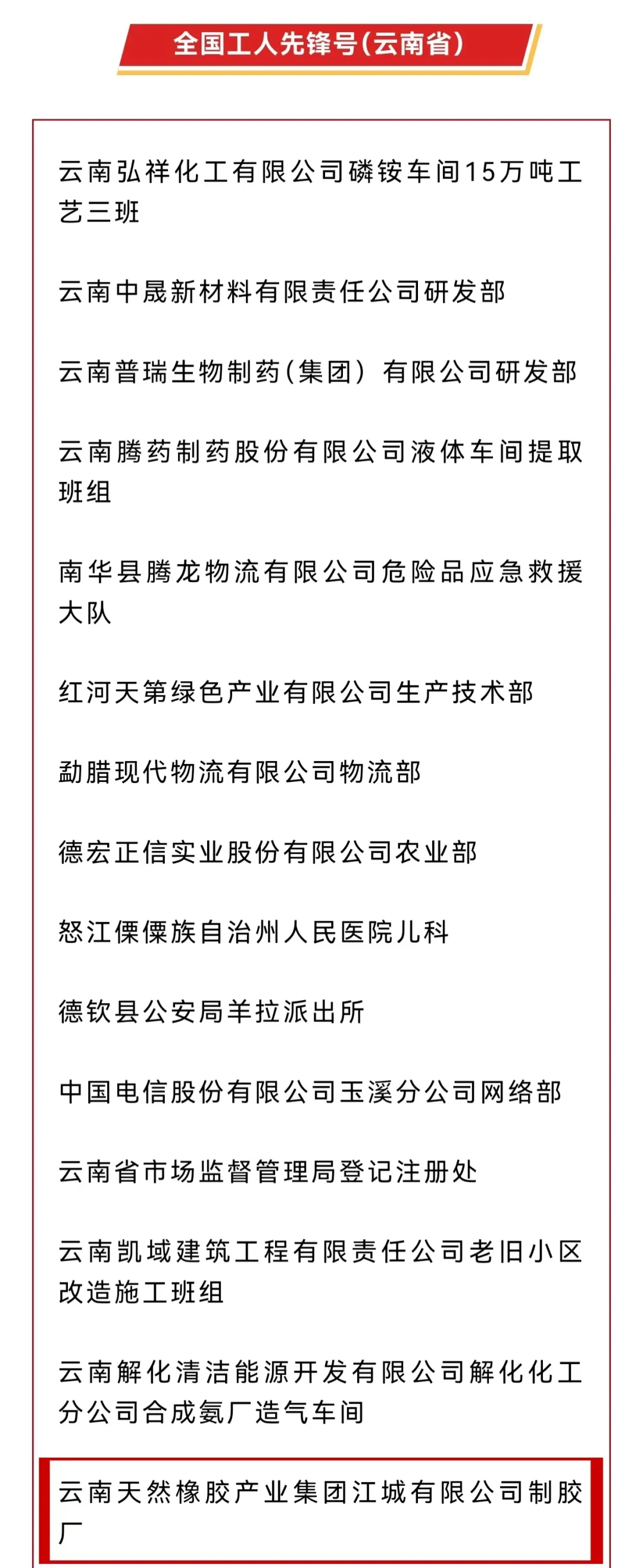 集团所属云南天然橡胶产业集团江城有限公司制胶厂获“全国工人先锋号”表彰